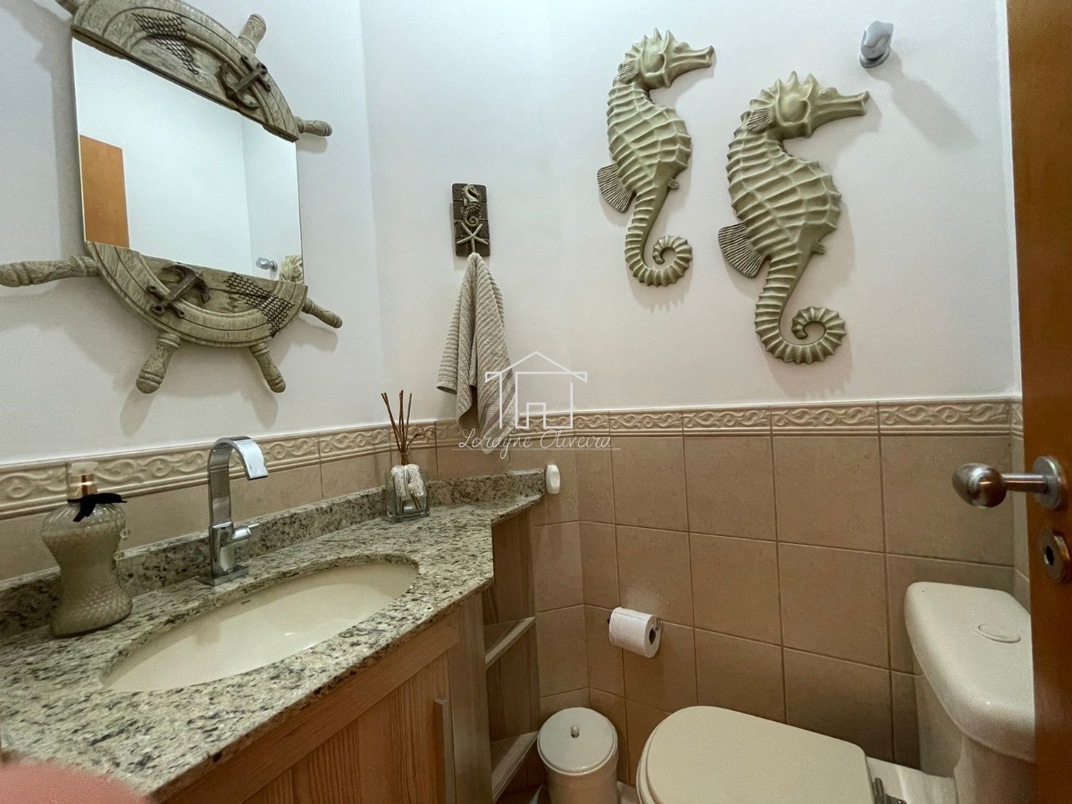 - Banheiro social adiciona conveniência ao piso inferior.